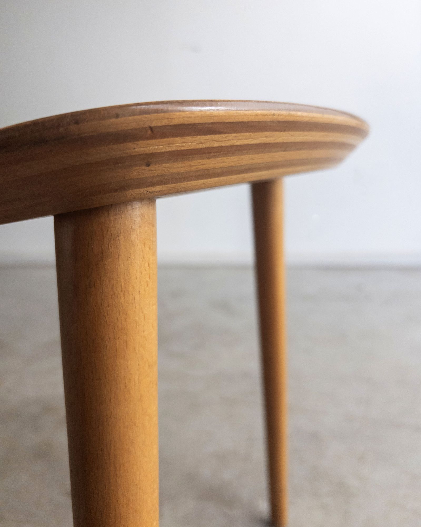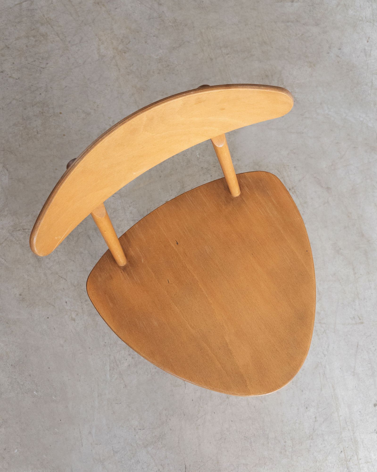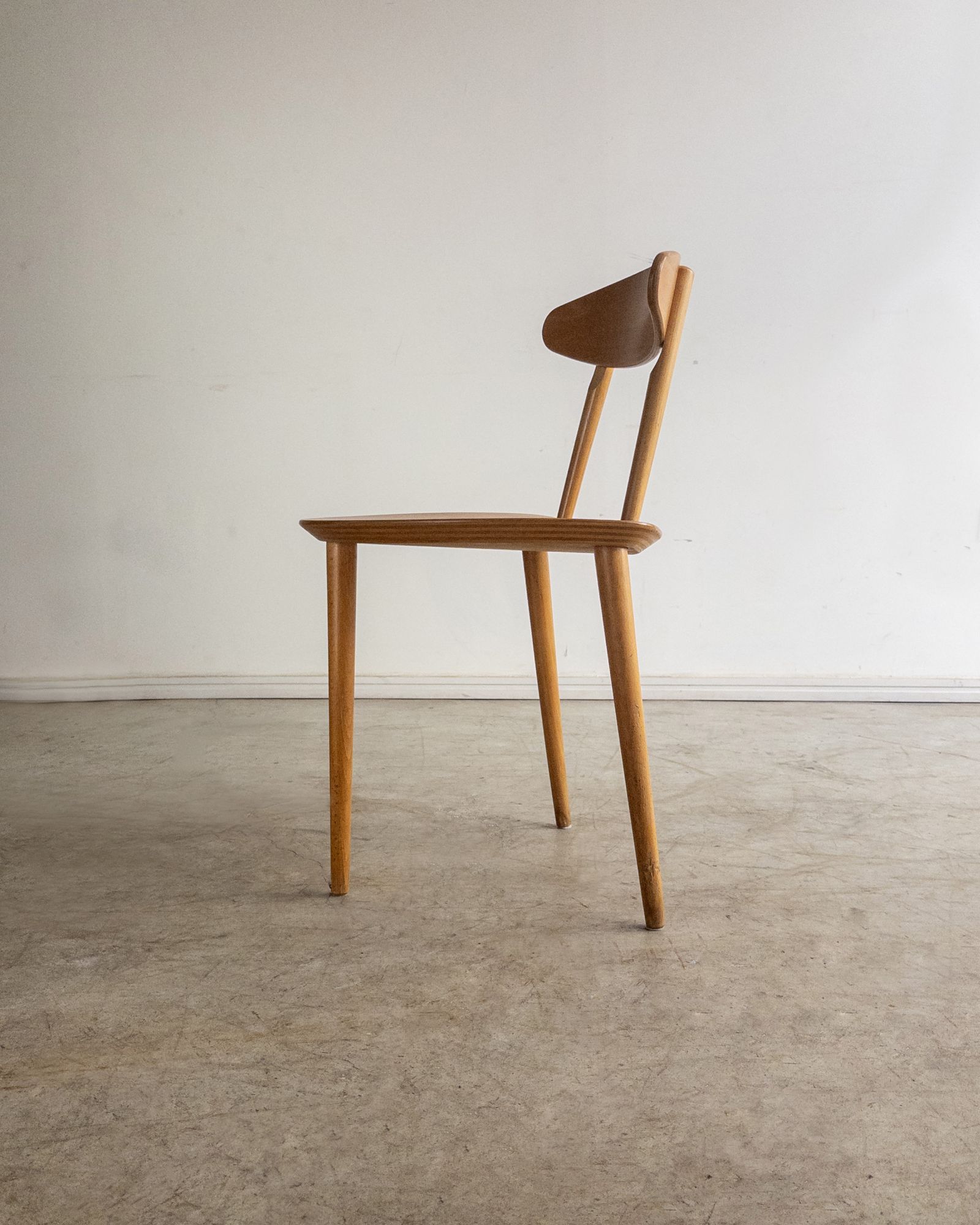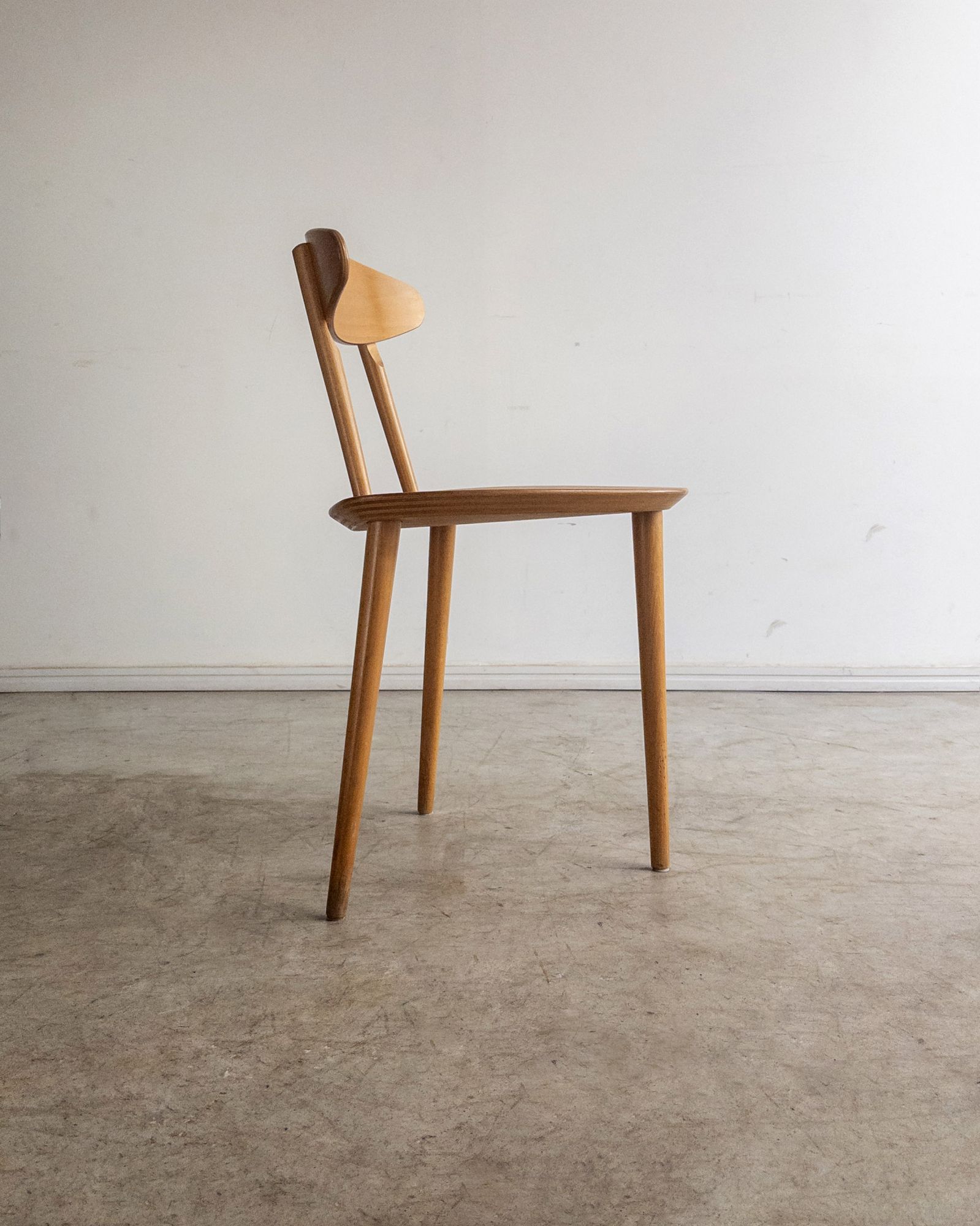 Três cadeiras em faia maciça, com encosto em forma de espaldar retilíneo. Design criado por Poul M. Volther para a dinamarquesa HAY, refletindo o ideal escandinavo de simplicidade e durabilidade. Pode apresentar leves marcas do tempo.
