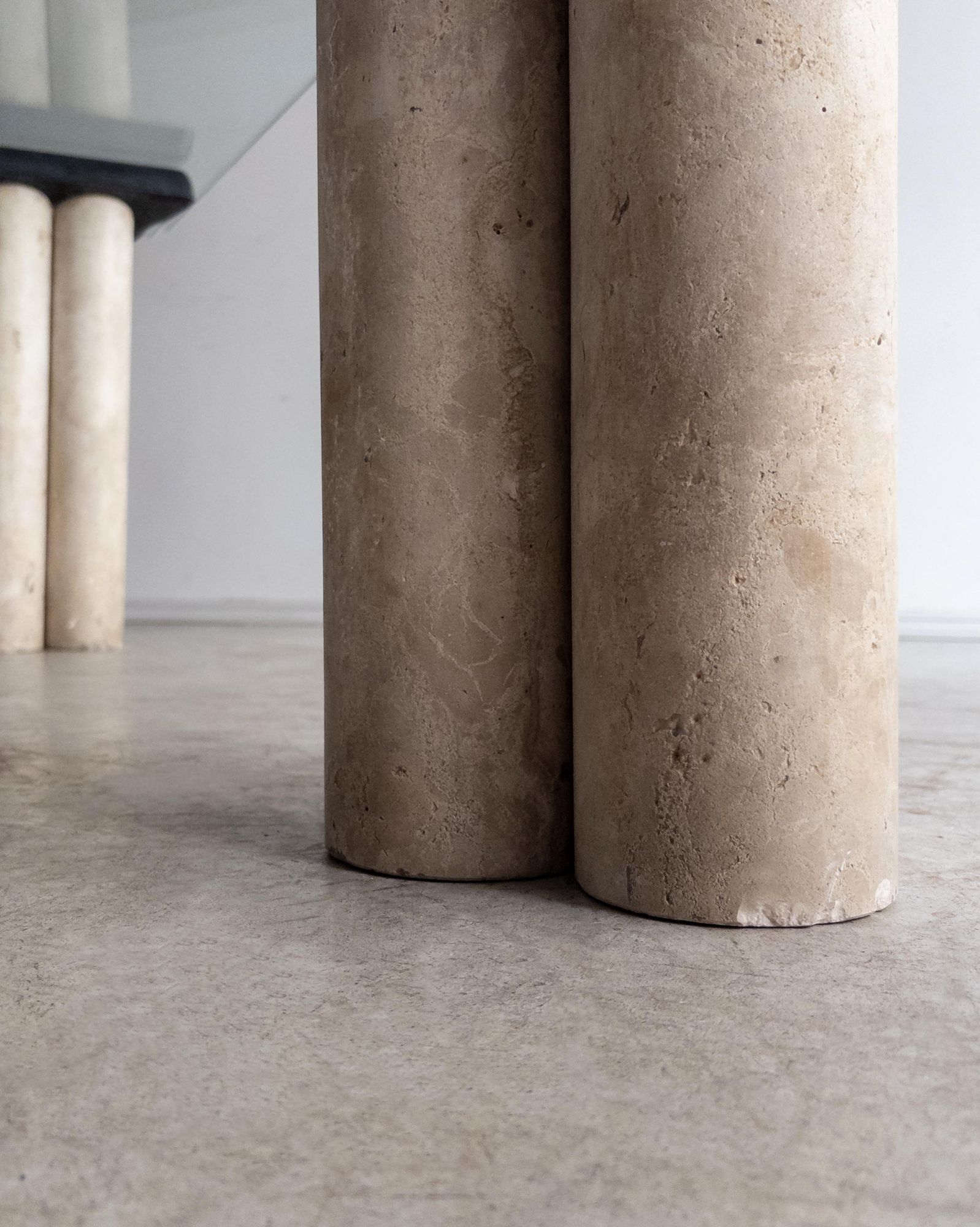 Técnica: Pés em concreto, apoio em mármore e tampo em vidro