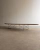 Clássico do design modernista, com tampo em formato elíptico e base em vergalhão cromado com travamento cruzado. Peça de linhas orgânicas e estrutura leve, editada no Brasil pela Móveis Tepperman. O tampo em fórmica apresenta marcas e pode ser substituído a pedido do cliente. Pode apresentar leves marcas do tempo.