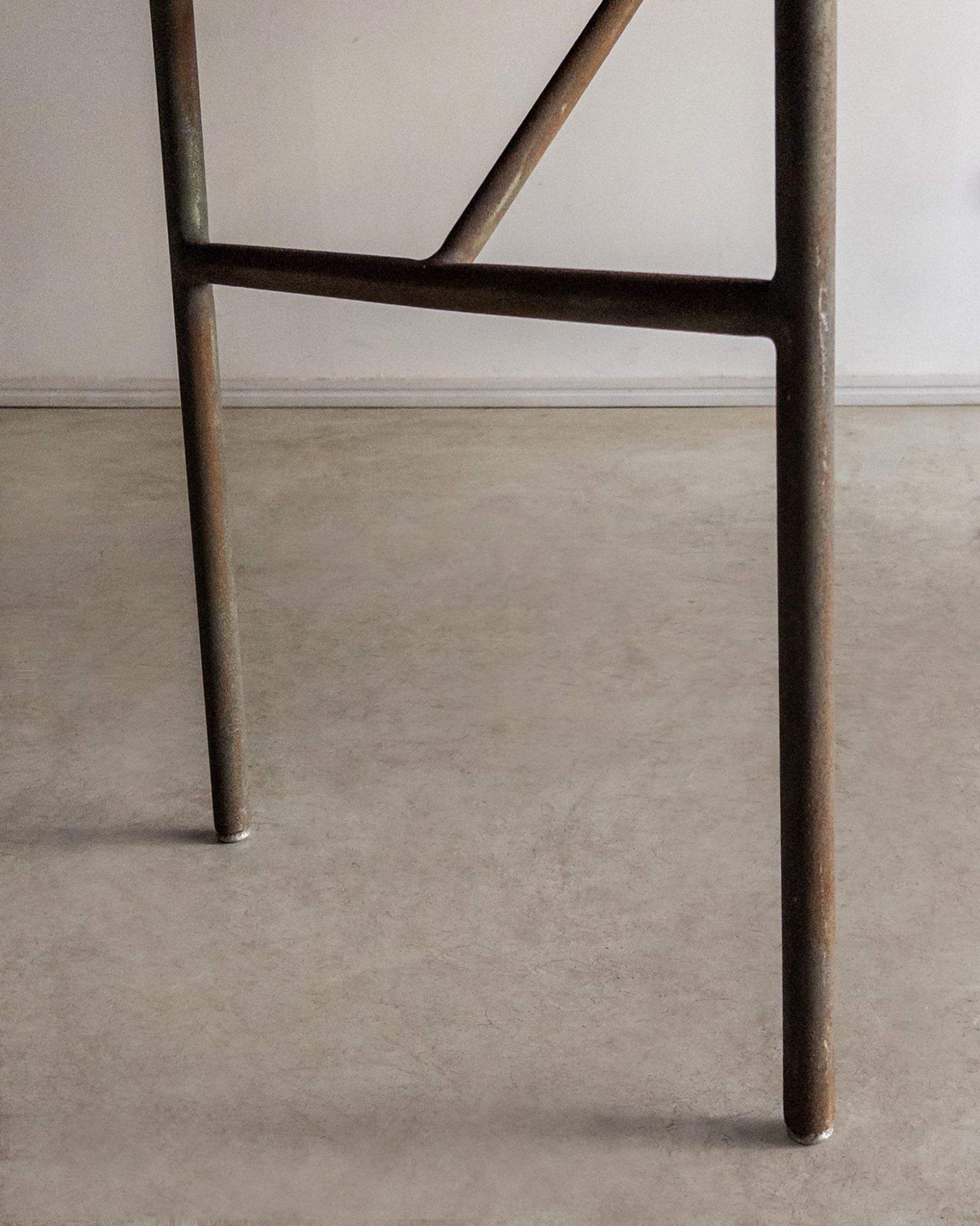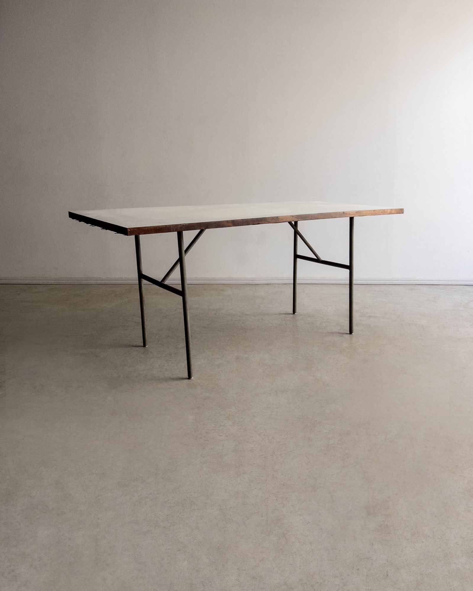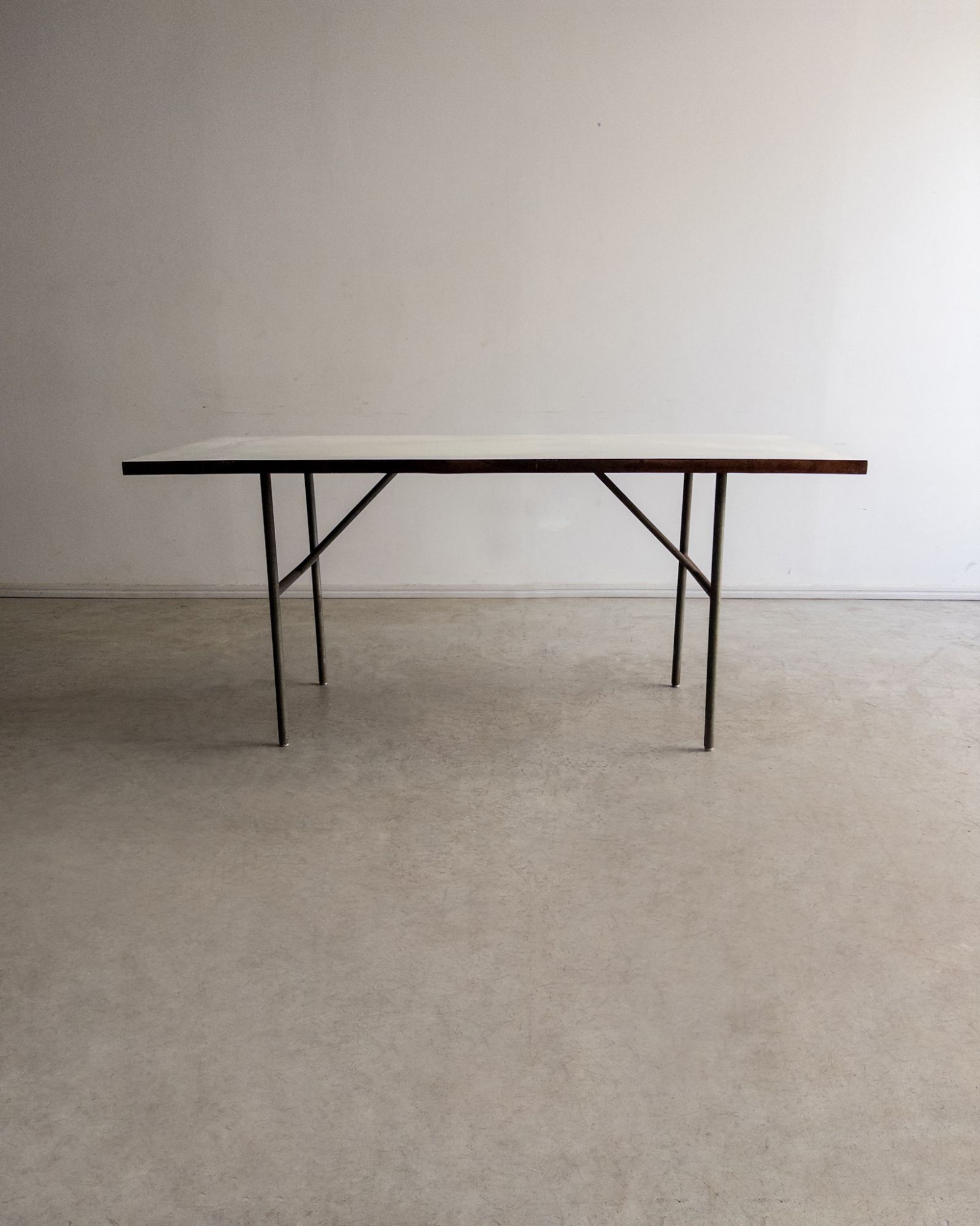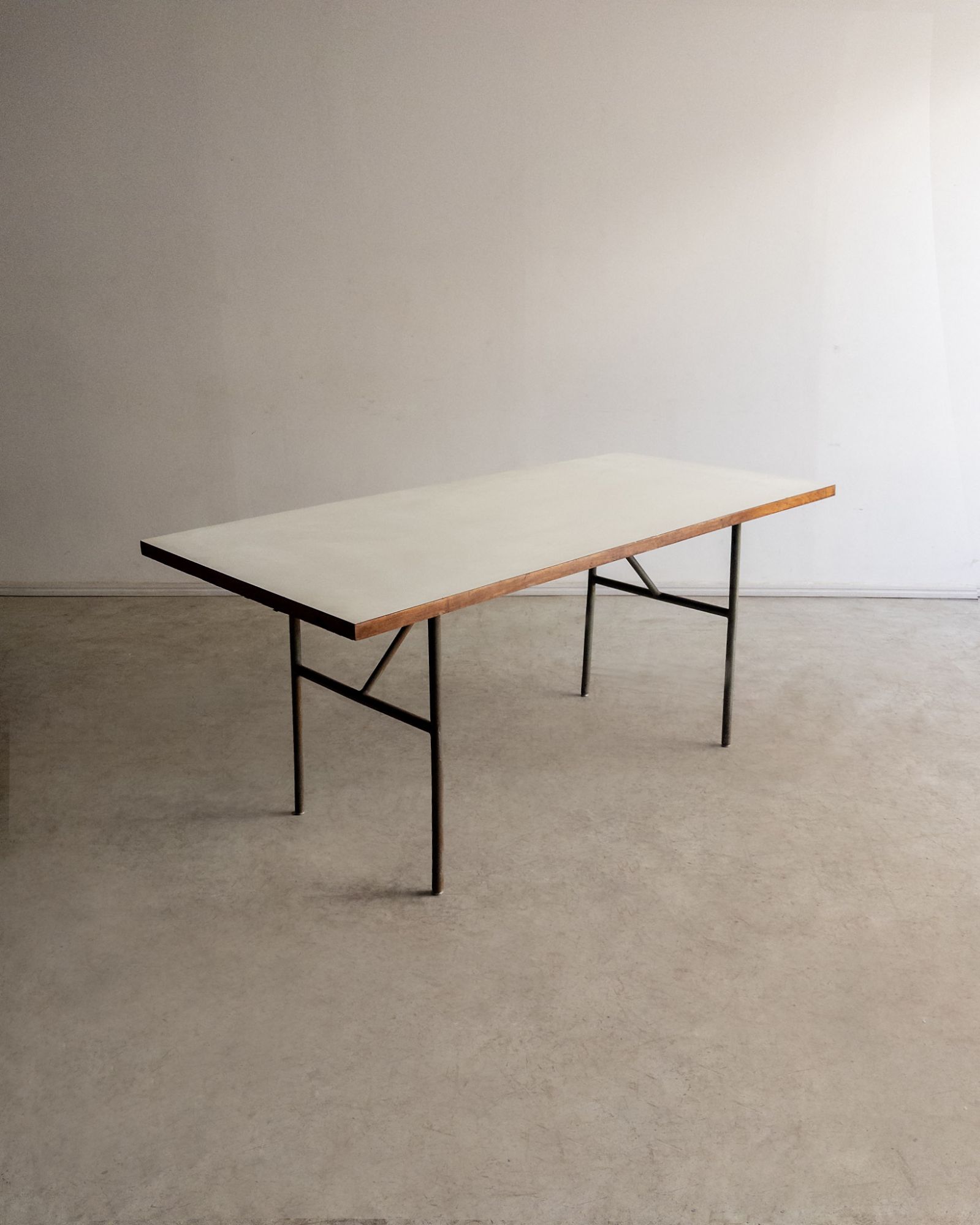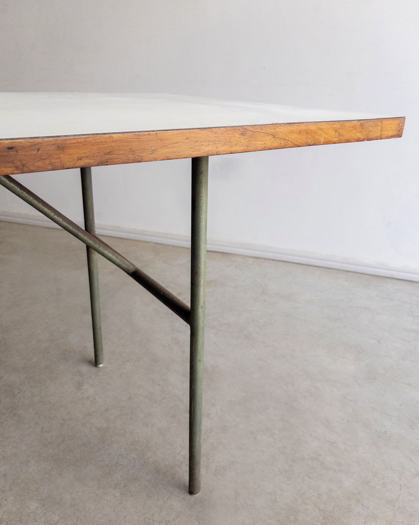 Estrutura em ferro com tampo em compensado e fórmica. Edição Unilabor. Pode apresentar leves marcas do tempo.
