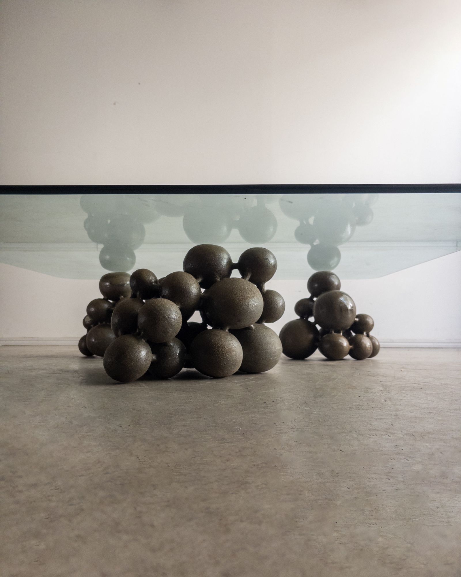 Mesa De Vidro E Ceramica Escultural