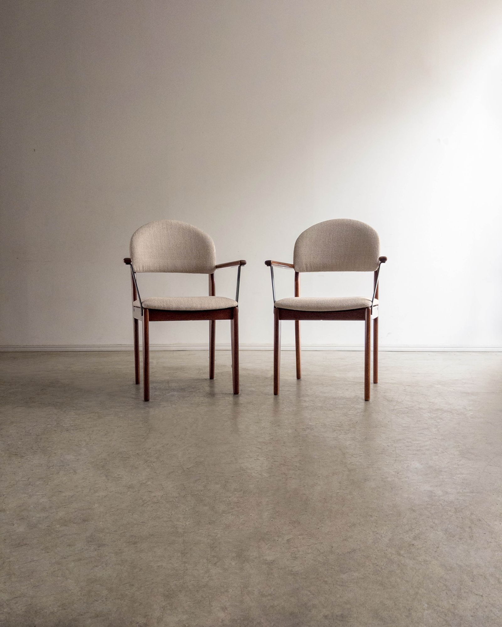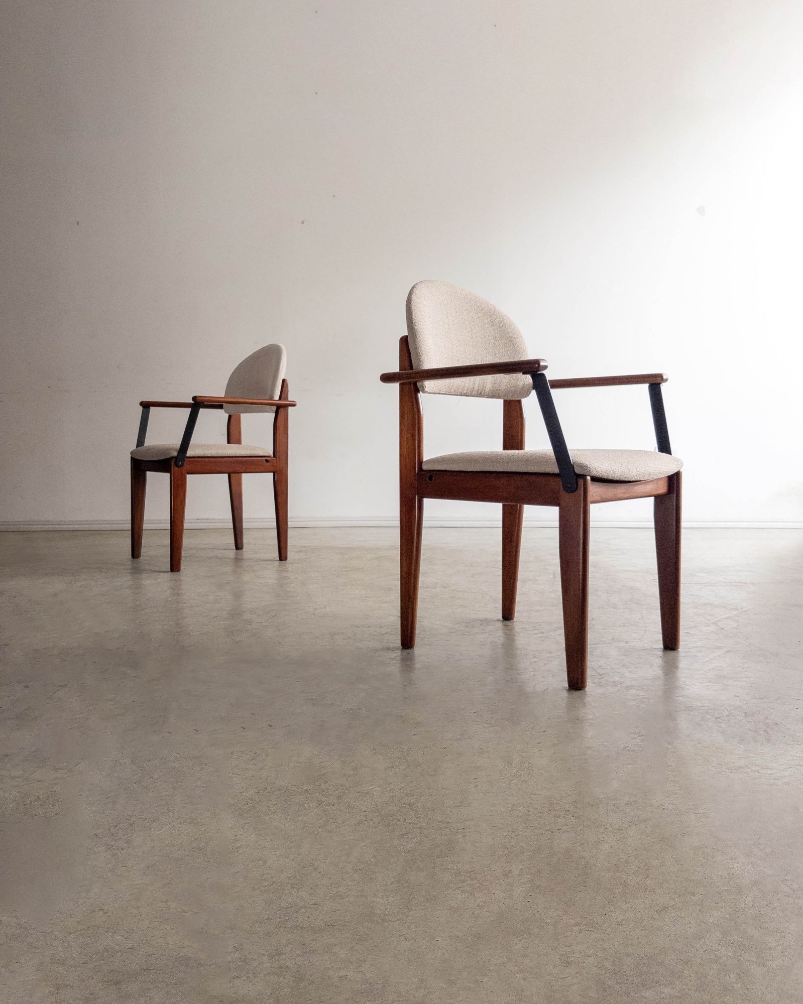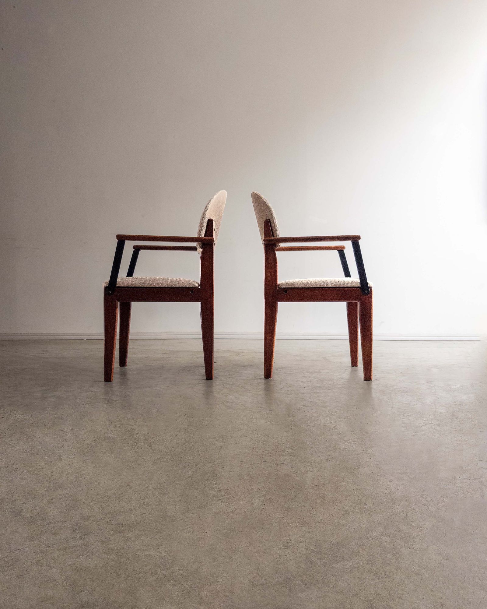 Neste par de cadeiras com braço, desenhado por Geraldo de Barros por volta de 1970, a presença da estrutura se torna ainda mais evidente. Produzidas pela Hobjeto, as peças revelam um momento em que o desenho se abre para variações sem perder a lógica construtiva.
