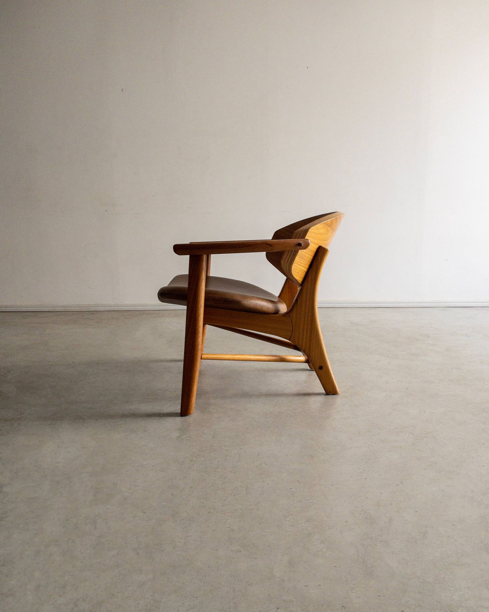 Na Poltrona Aero, a elegância nasce da própria estrutura. O desenho revela o domínio absoluto da marcenaria, com encaixes precisos, proporções bem calibradas e uma atenção minuciosa aos detalhes construtivos.