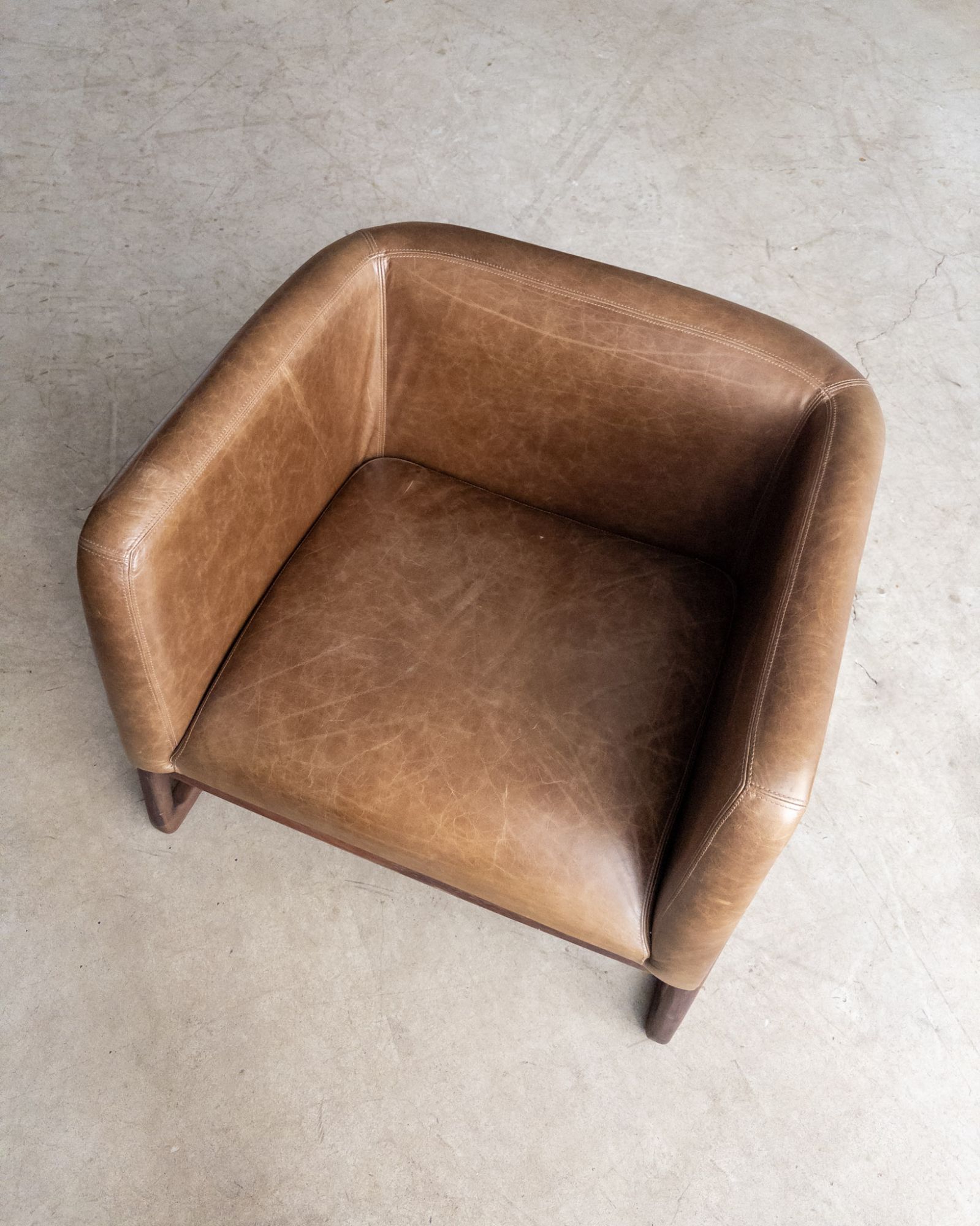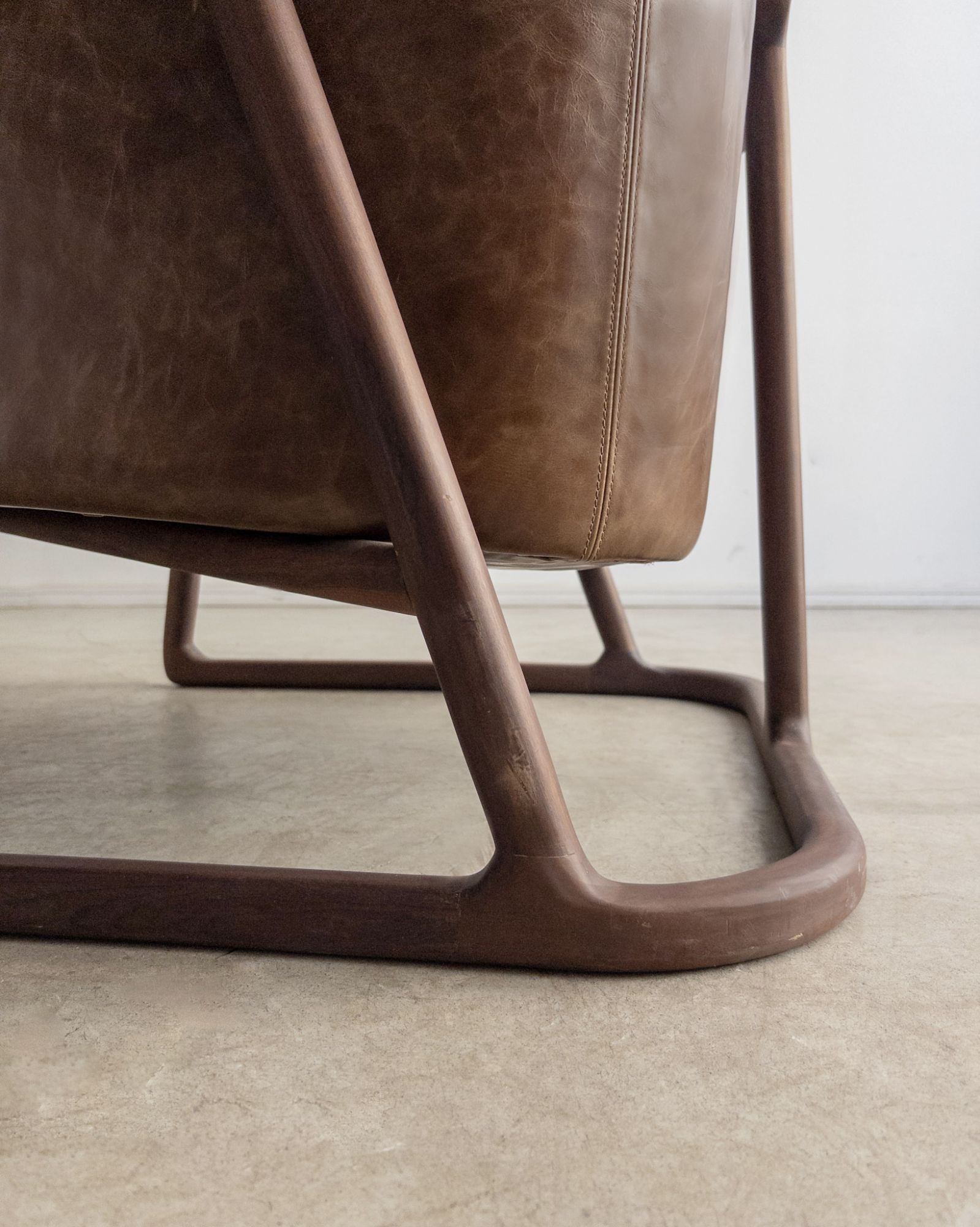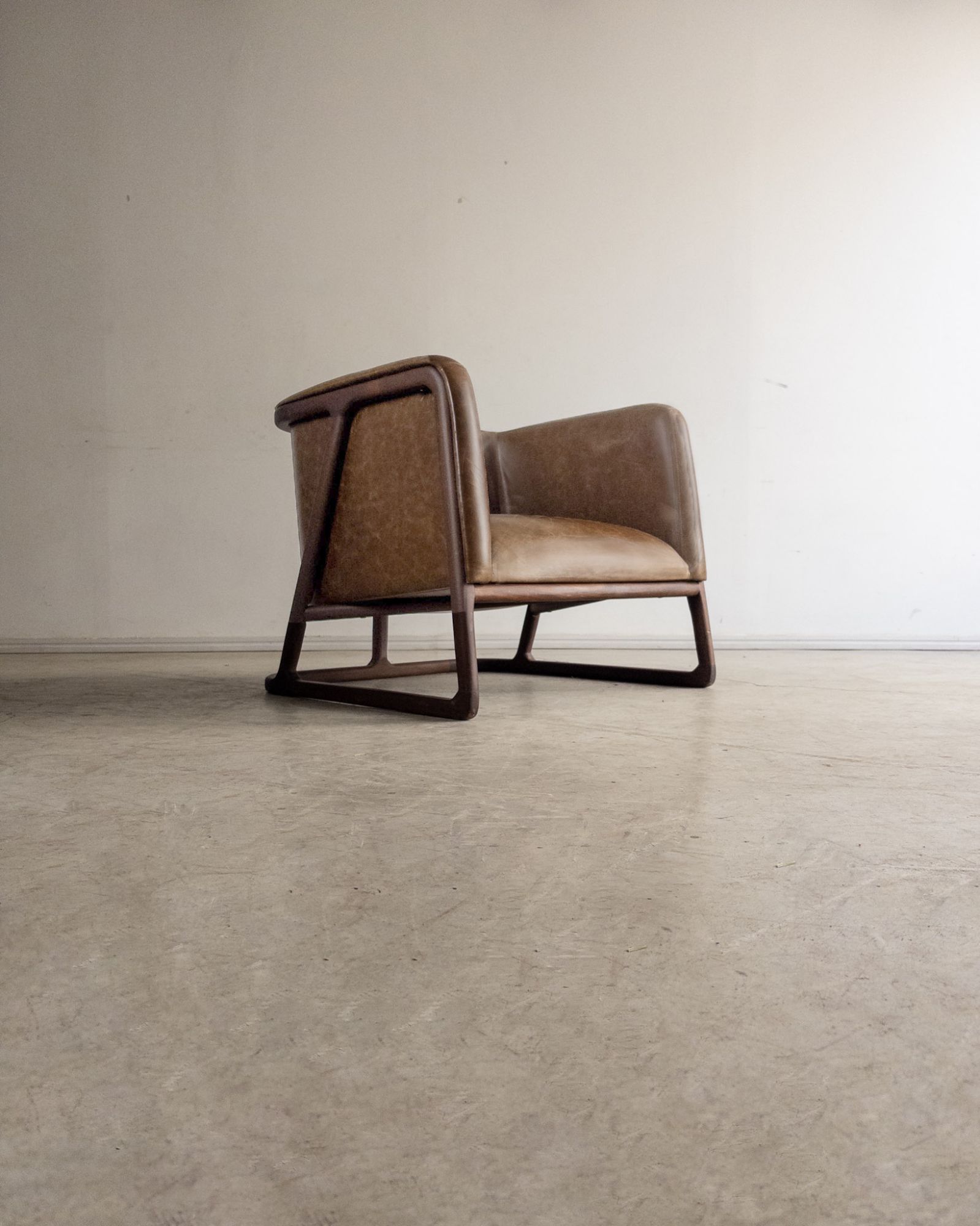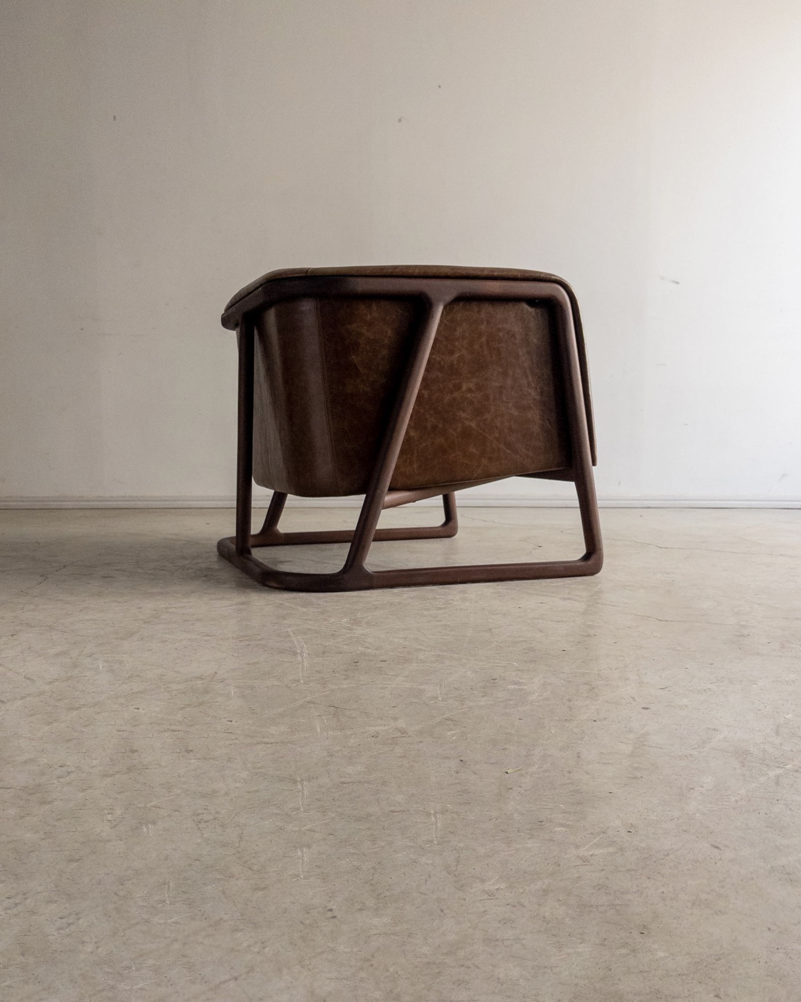 Super confortável, com estrutura em madeira maciça torneada e assento revestido em couro natural, a Poltrona Carybé, de Ronald Sasson, equilibra técnica refinada e delicadeza estética.