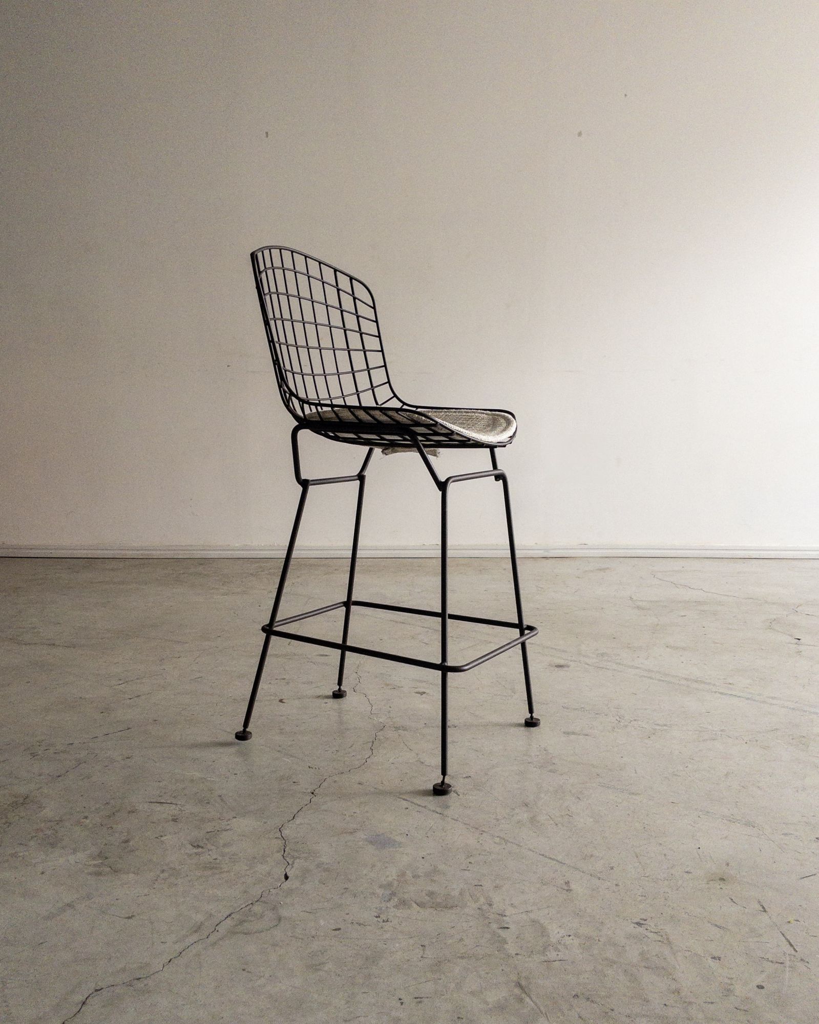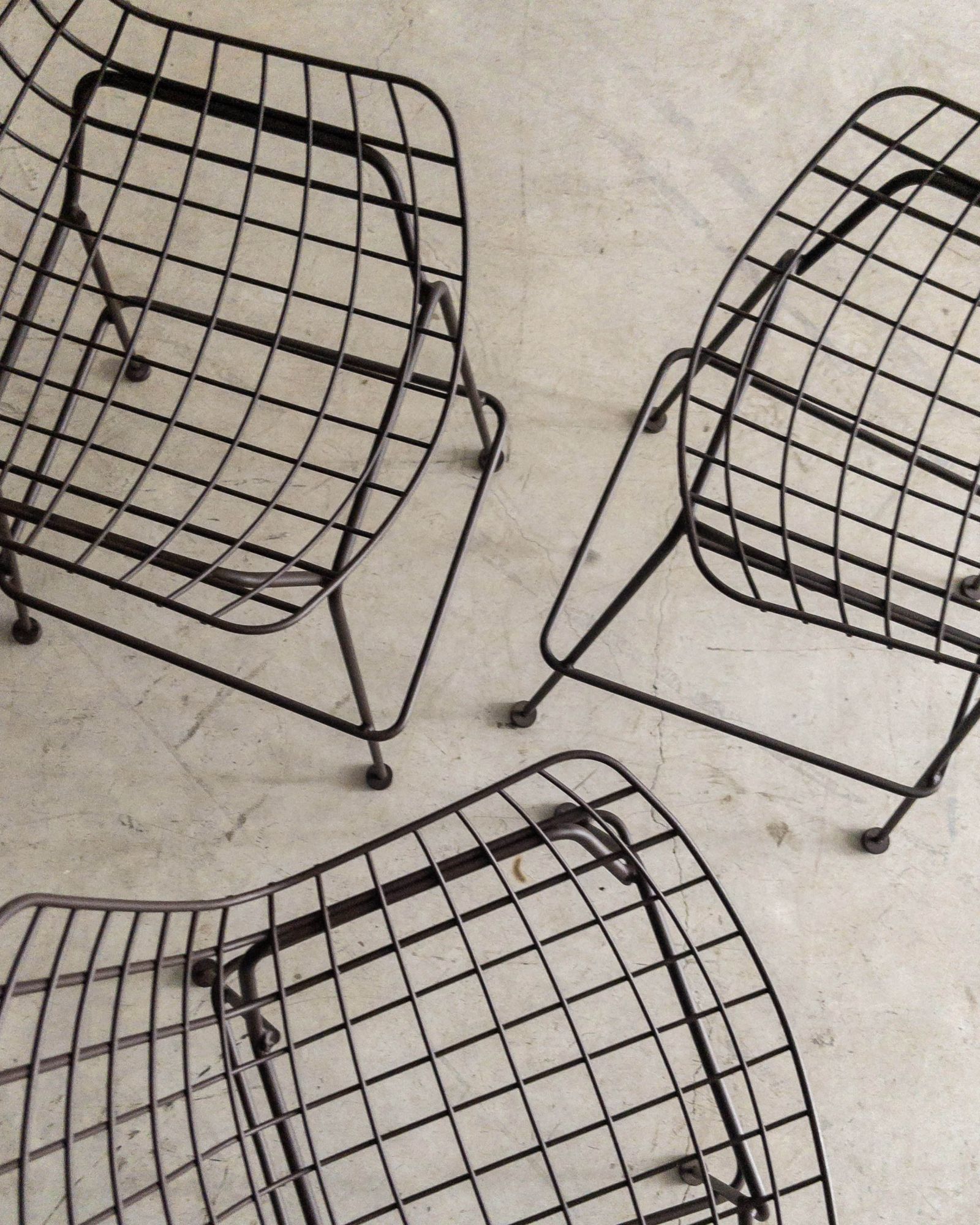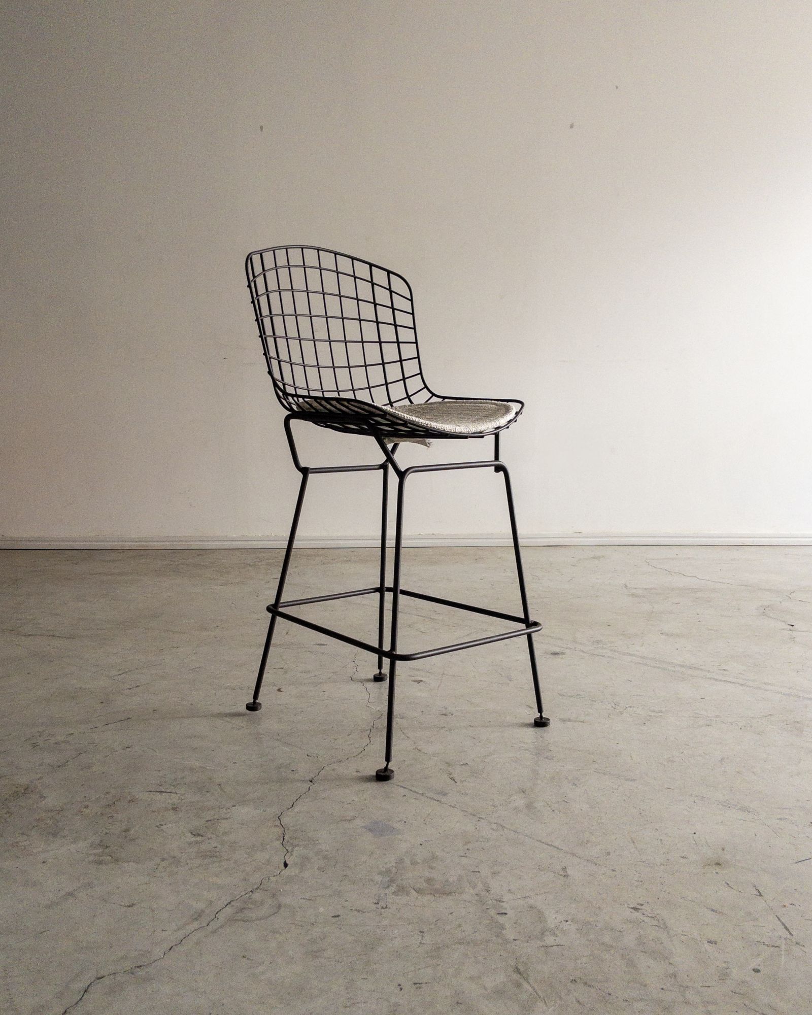 Formada por fios metálicos que se organizam em uma trama leve e estrutural. O desenho revela a linguagem característica de Bertoia. Minimalistas e gráficas, as peças transformam a malha metálica em forma e suporte, mantendo leveza visual e presença marcante.