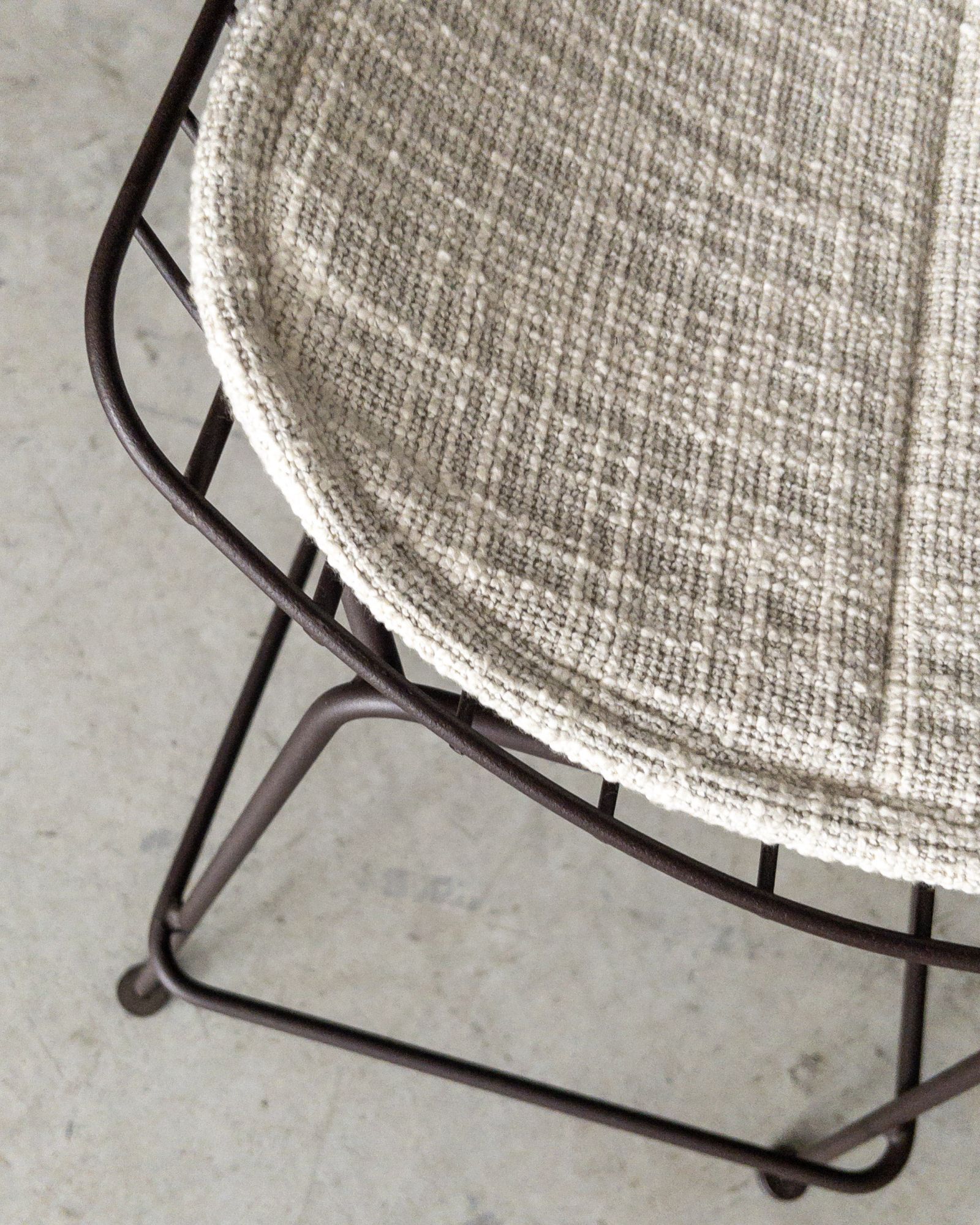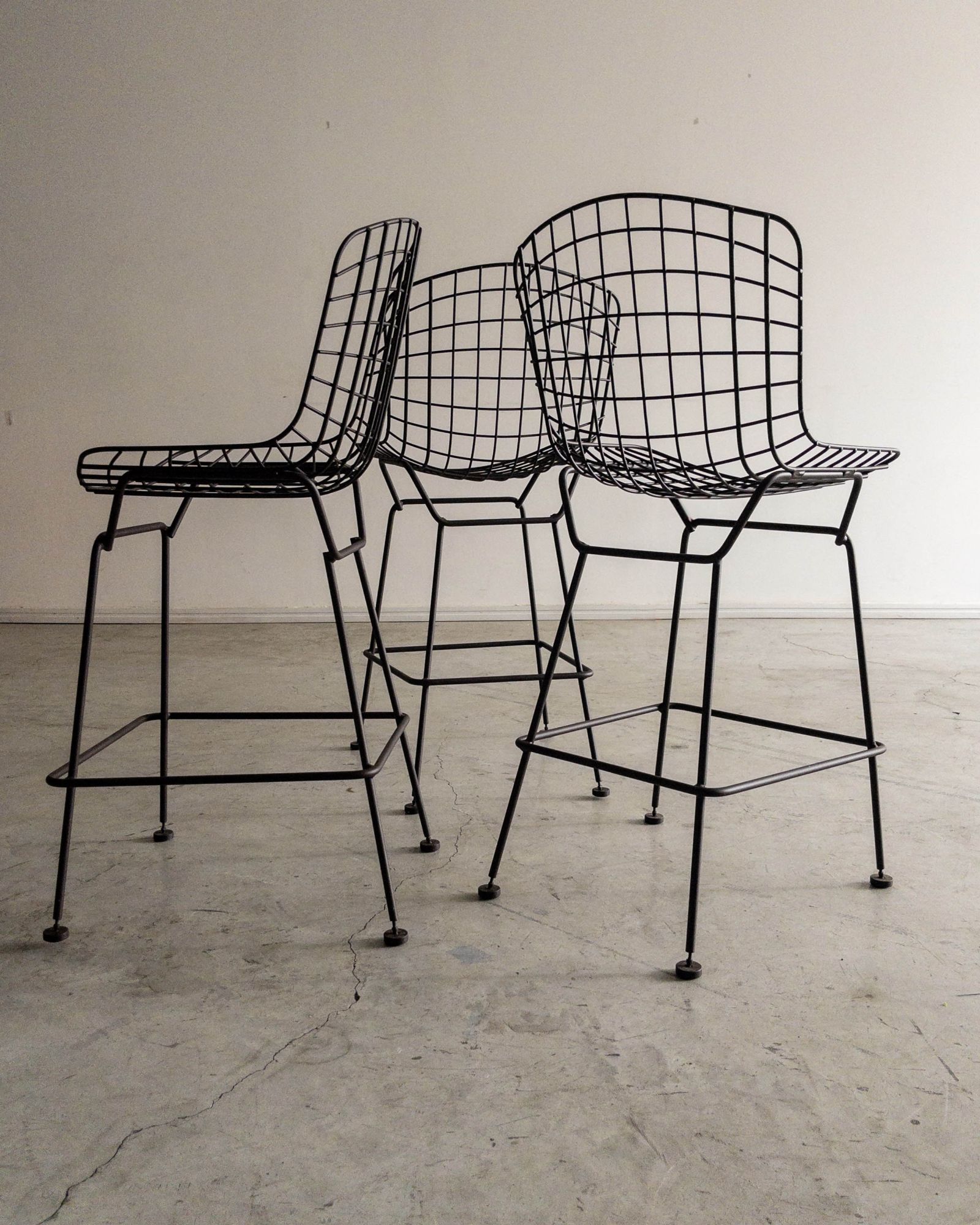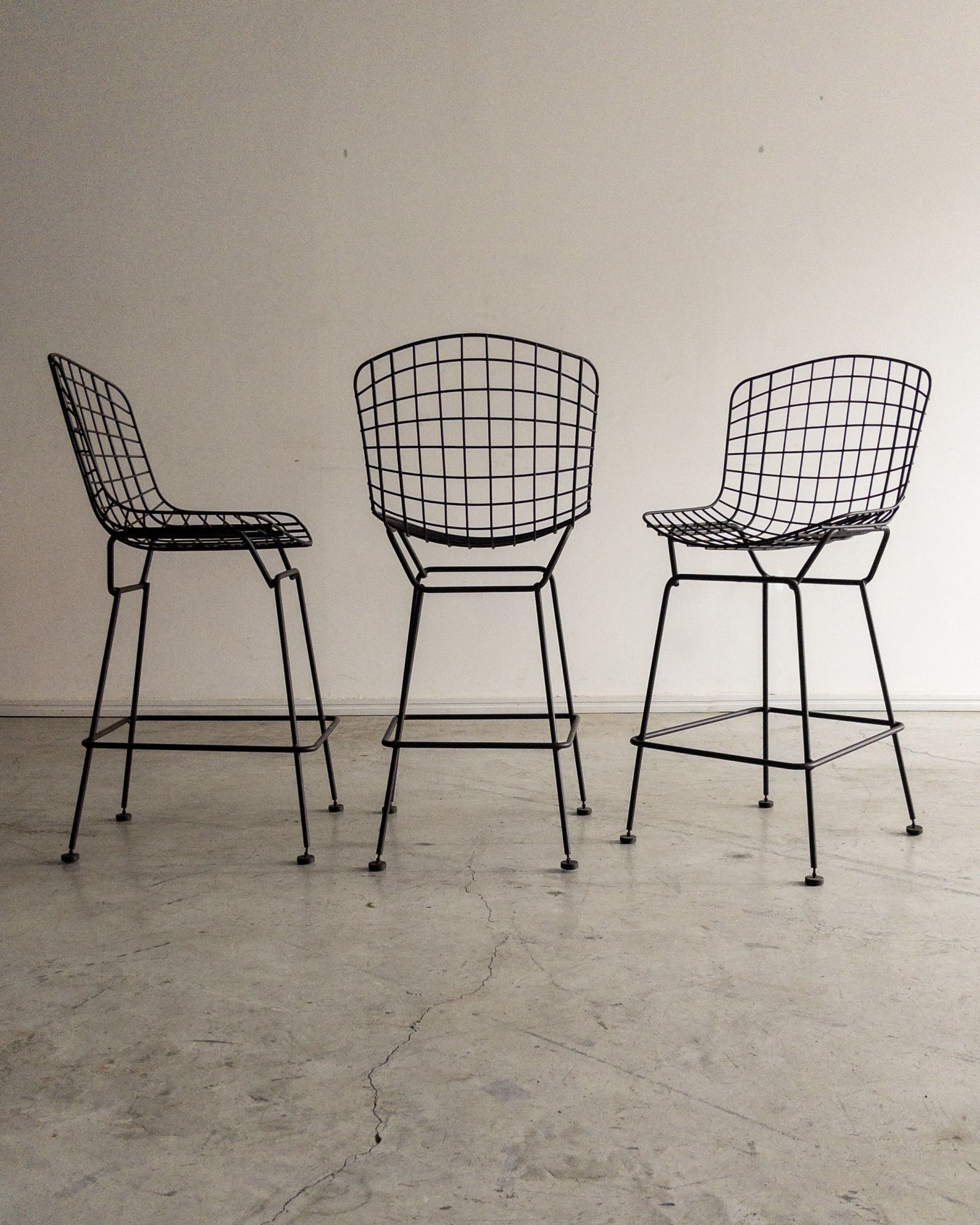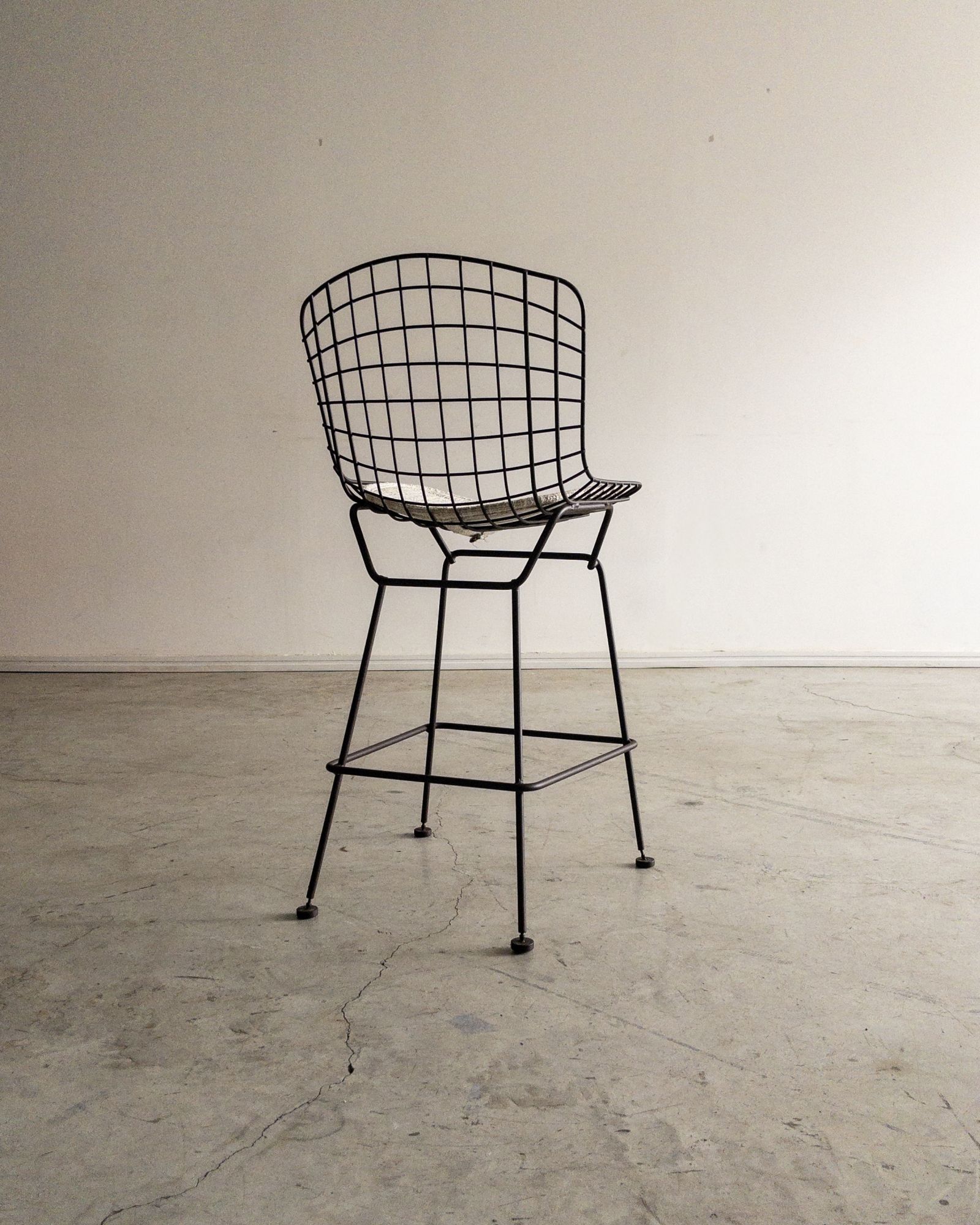 Formada por fios metálicos que se organizam em uma trama leve e estrutural. O desenho revela a linguagem característica de Bertoia. Minimalistas e gráficas, as peças transformam a malha metálica em forma e suporte, mantendo leveza visual e presença marcante.